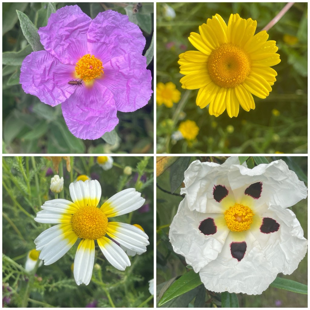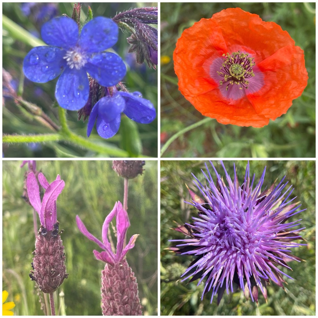 We change direction again and suddenly there’s lavender growing and cistus of all colours. I see a singular iris and the tiniest of bright blue lupins.