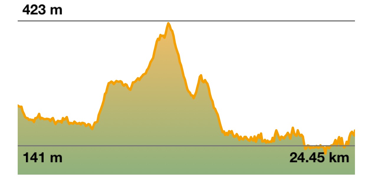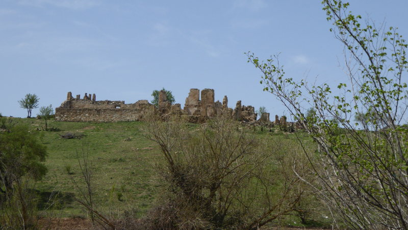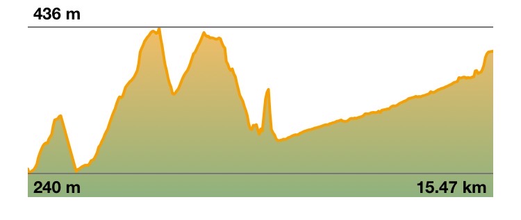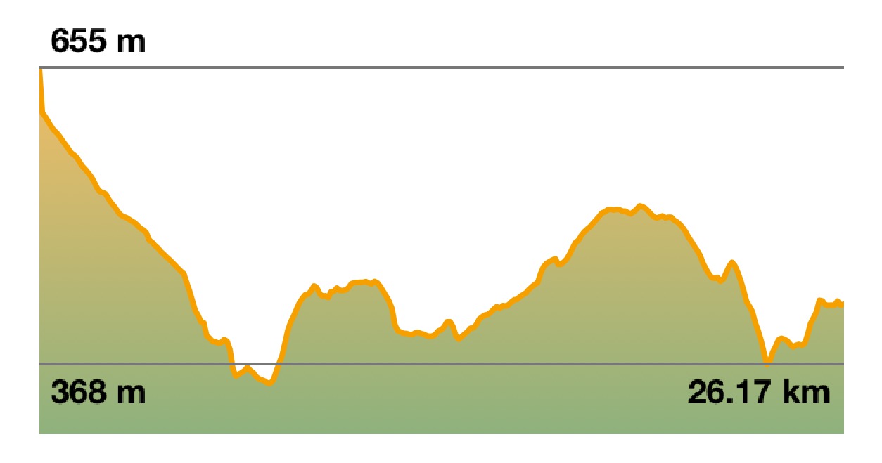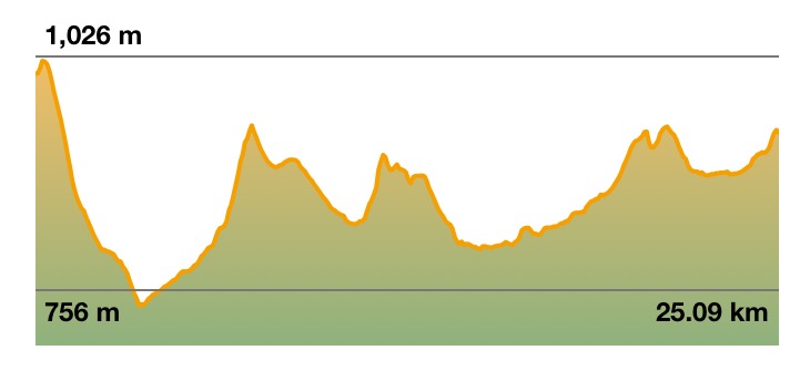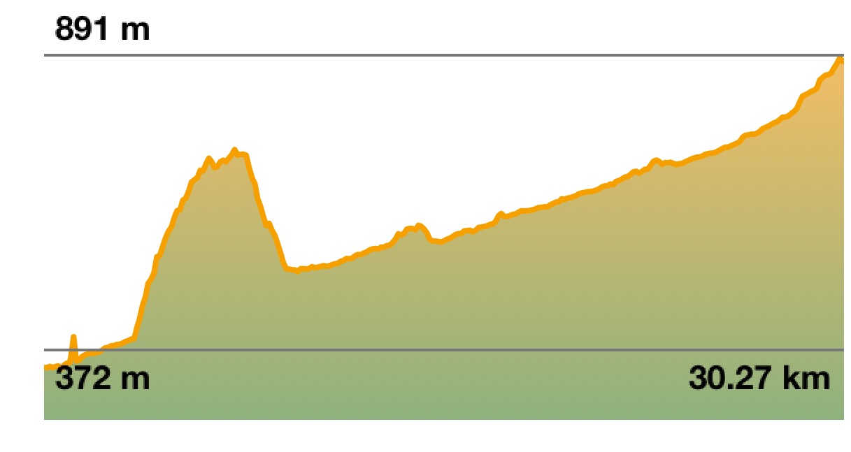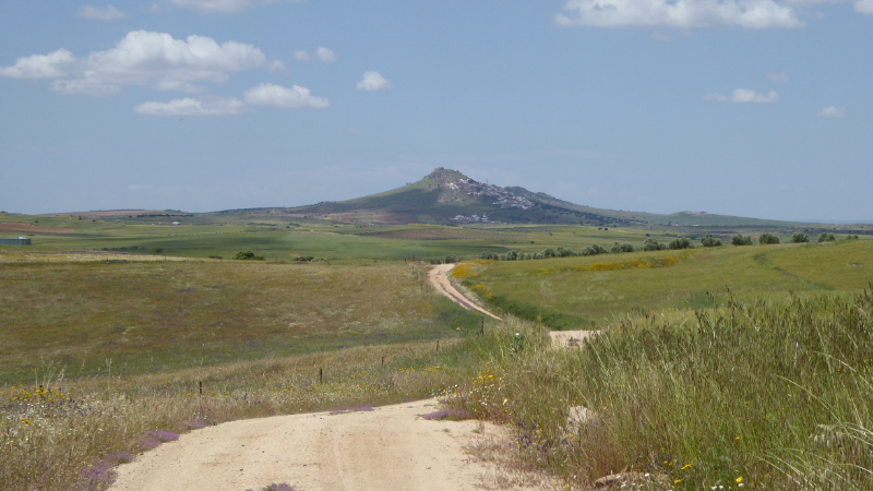 Castuera to Magacela 35 km (there are a couple of albergues between these towns at 8 km and 20 km). Comfortable track all the way, wide open pastureland, no shade. Archaeological site at 27 km that can be visited on weekdays. Magacela sits atop a hill and can been seen from a great distance. We stayed at Casa Rural el Cercón de Candelo, telephone Isabel 651 670 413 situated before reaching the hill, well signed from the camino. Highly recommended, beautiful peaceful courtyard, two bedrooms with twin beds, and bathroom. Cost 15 euros including breakfast. Dinner can be provided for 10 euros. The spike at the end of the elevation profile above shows where we unnecessarily climbed the hill and back down again to find the albergue.