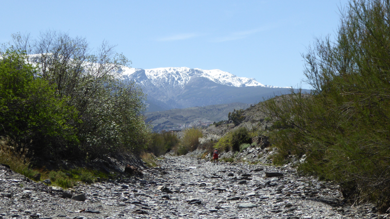 Alboloduy to Abla 30 km. Start on riverbed – hard underfoot, after 3.5 km on narrow tracks with steep elevation and back down to riverbed. At least two thirds of the stage is on the riverbed which is hard-going. Town at half-way point and a couple of villages after that. Over 800 metres elevation gain on this stage. Abergue at very top of town opened three years ago and has two rooms, each with three bunk beds, but only one bathroom for twelve people. There is a good kitchen and washing machine, but no wifi. Donativo, ring ahead to reserve 660 229 995 / 626 377 113