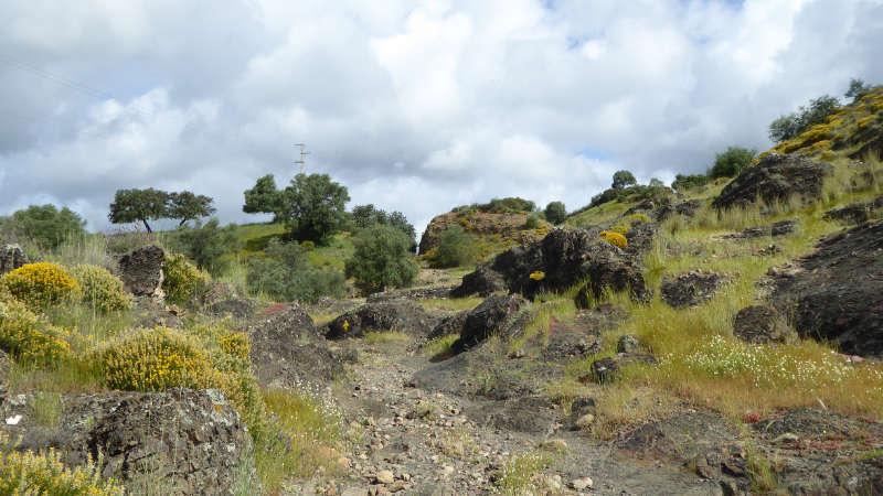 Córdoba to Cerro Muriano 19 km. A pleasant walk out of the city following discrete ceramic wall plaques. Countryside starts at 4 km, a beautiful walk with much elevation. We reach the oddly deserted suburb of Torreblanca at 7.5 km, but we don’t pass any shops or bars. Then we are in stunning woodland with a riot of wild flowers. There seem to be two options for accommodation in Cerro Muriano – Bar X 957 350 188 / 656 836 262 – 15 euros, which was full, and Santa Maria del Trabajo where we stayed for 22.75 euros which seemed very expensive for a room shared by 4 with two singles and one bunk. There is a variety of accommodation but I think we had the only available room. It is run by a charitable organisation that raises money for the people down on their luck, rather an odd place. There are interesting ruins of a copper mine just outside the town if you have the energy for more walking.